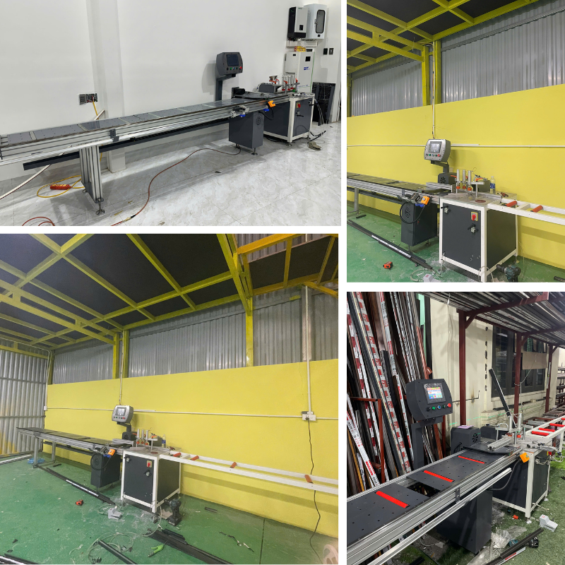 Chuẩn bị phôi cho máy cắt nhôm: Đây là chức năng chính. Máy tự động định vị và đẩy thanh nhôm đến đúng chiều dài đã lập trình, giúp thợ cắt chỉ việc cắt mà không cần đo, dóng, tính toán. Quy trình từ “đo -> vạch dấu -> cắt” trở thành “đặt phôi -> nhấn nút -> cắt”.